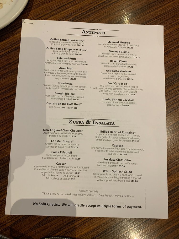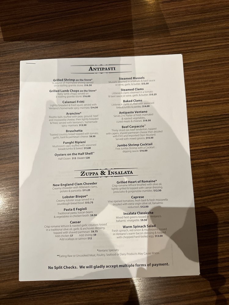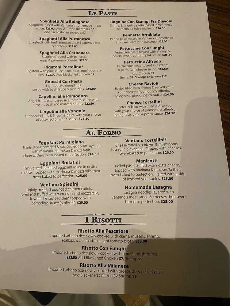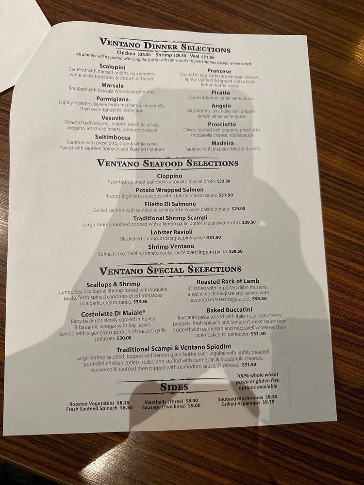 Ventano Italian Grill & Seafood offers a wide range of Italian and seafood dishes, with options for vegans and vegetarians. The menu includes delectable selections like Scalopini Dinner, Saltimbocca Dinner, and Prosciutto Dinner, as well as Antipasti choices such as Baked Clams and Bruschetta. For Zuppa and Insalata, diners can enjoy New England Clam Chowder Soup and Grilled Heart of Romaine Salad. Customers rave about the attentive staff and the beautiful views offered at this restaurant. With a comfortable ambiance and generous portions, Ventano is a great spot for family-style dining or a romantic evening out. Make sure to try their Shrimp Scampi for a delicious experience!
